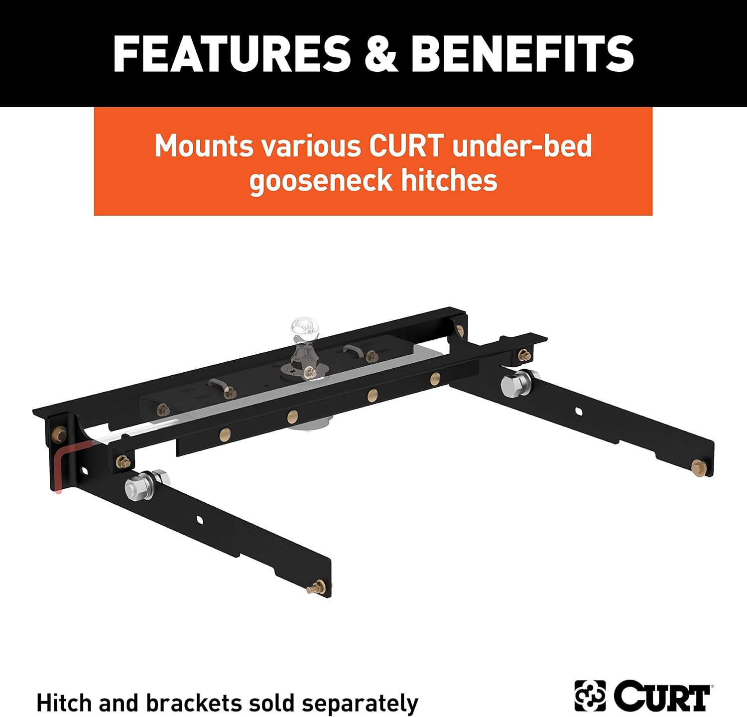 Choosing the right gooseneck hitch is only half the battle in preparing your pickup truck for towing a gooseneck trailer. CURT gooseneck hitches are a premium option in the heavy-duty towing industry, but they are only one of the members in the heavyweight tag team that is CURT gooseneck towing. While a gooseneck hitch gets all the glory above the floor of your truck bed, gooseneck installation brackets provide sure footing and a solid foundation for that oversized gooseneck trailer. Gooseneck installation brackets work by bolting onto the frame of your truck, typically using pre-existing holes. With a set of brackets firmly bolted on, a gooseneck hitch is able to be attached and is given the strength it needs to manage the massive amount of weight of a gooseneck trailer. With so many gooseneck hitch options available from CURT, we wanted to make sure we offered the gooseneck installation products needed to give you a complete towing package. Our installation brackets fit multiple vehicles and hitch heads. This particular set of gooseneck installation brackets is able to work with CURT Double Lock, Quick Goose II and under-bed folding ball gooseneck hitches. It is rated to the vehicle's maximum gross trailer weight capacity and provides a custom fit for certain years of the Ford F150, Ford F250 with old body style or Ford F350 (see application info to verify fitment). With each set of CURT gooseneck installation brackets, we provide the necessary hardware for an easier installation, and we coat our gooseneck brackets in a liquid A-coat to make sure rust and other potential damages are not a problem.