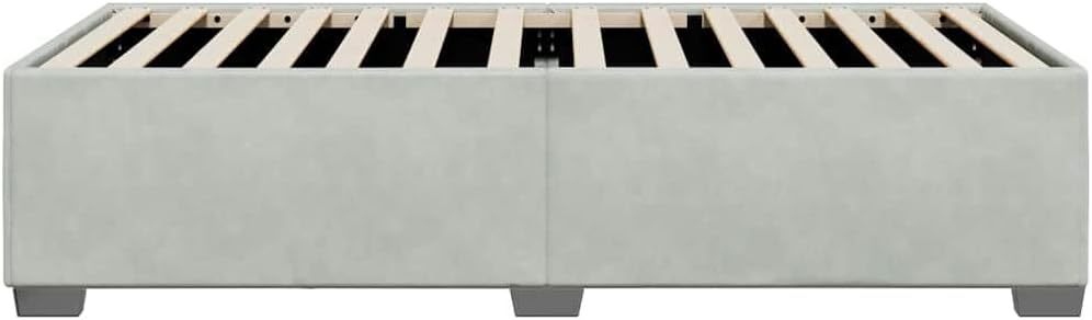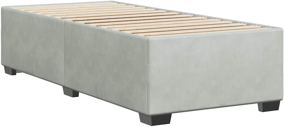 This Light Grey Twin XL Velvet Bed Frame combines modern design with exceptional comfort, making it a top choice for a stylish bedroom. Made from soft velvet fabric with a matte finish, it offers a classy look while being practical and built to last.Stylish Visual Appeal: The modern light grey upholstery gives your bedroom a fresh vibe that's easy to pair with other furniture.Quality Velvety Texture: Made with silky velvet, this bed frame isn't just a sight to behold, it feels soft and comfy too.Supports a Twin XL Mattress: Made specifically for a Twin XL mattress, this frame offers plenty of space so you can sleep comfortably, ideal for single adults or teens.Robust Slatted Base: The slats support your mattress while allowing air to flow, keeping things comfy and breathable while you snooze.Sturdy Frame Structure: Built from plywood and engineered wood, this bed frame is a solid foundation that promises long-lasting use.Color: Light GreyShape: RectangularMaterial: Fabric VelvetFinish: MatteIndoor/Outdoor: Indoor OnlyCover Included: NoRoom: BedroomCapacity: Twin XL mattress sizeMaximum Number of People: 1Dimensions: 15.6 x 31.5 x 7.1 in (W x L x H)Leg Height: 2.4 inSwings: NoDelivery Contains: Bed Frame without MattressAssembly Required: YesRecommended Number of People for Assembly: 2
