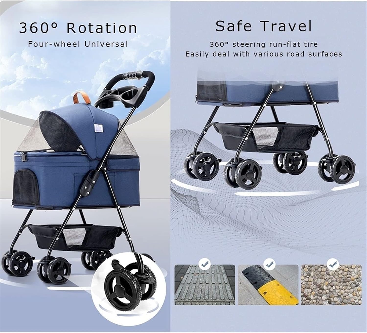 Specifications: Include: pet stroller *1 Product name: pet stroller Range of use: universal for cats and dogs Packing size: 46*20*80cm Expanded size: 96*45*67cm Folding size: 86*45*24cm Cage size: 53*31*47cm Bearing weight: 15KG Body weight: 5.4kg Gross weight (with packaging): 6.45kg Material: Oxford fabric, fine iron frame, high-strength mesh, high-quality tires About color difference:The product presents different colors under different light. The actual color cannot be guaranteed to be exactly the same as the current page display in any environment. Please refer to the actual product. Regarding the smell: after packaging and sealed transportation for a period of time, the new product may have a little smell, and it can be dried in a ventilated place for a period of time. Reminder: Manual measurement does not exclude the possibility of error. The above reference is only for reference, and the actual product shall prevail! Customer Service: We strive to provide the best products and service for our customers. If you have any complaints about the products, please feel free to contact us. Your satisfaction is our constant goal.